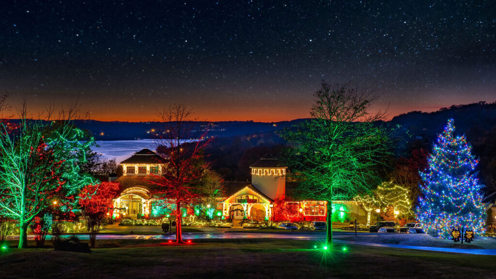 In early November, the 4,600-acre rustic luxury resort unveils its annual transformation into a breathtaking Winter Wonderland. More than 4 million lights blanket the property, woven through towering pines, draped across historic buildings, synchronized in animated displays, and reflected in the still waters of Table Rock Lake.