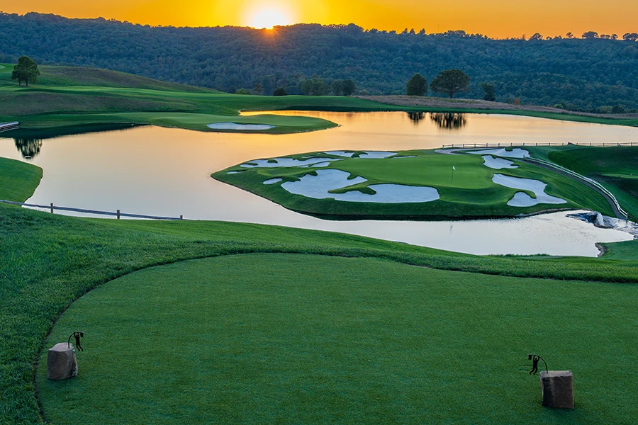 Originally designed to be the Payne’s Valley driving range, Johnny and JP Morris begin walking the land and daydreaming about a new par 3 course on the side of a limestone cliff. After just a month of planning, excavators start moving dirt.